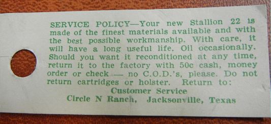cents (!) you could return your Stallion 22 for repairs.