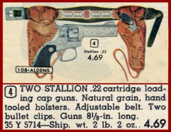 set was hand-tooled leather. Notice that the trigger of the Stallion 22 in the