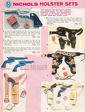 An ad from a 1961 brochure showing the Cowhand Cap Gun and some nice holster sets.