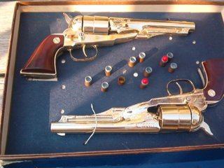 G-45. As if being rare were not enough, I am assured that these guns are absolutely MINT except that one has a VERY minor scratch of little consequence on the barrel. The grips are simulated wood, and the "Circle Ns" are the fancy gold type like on the famous G-45. Thanks Jim Manning for these photos! |
