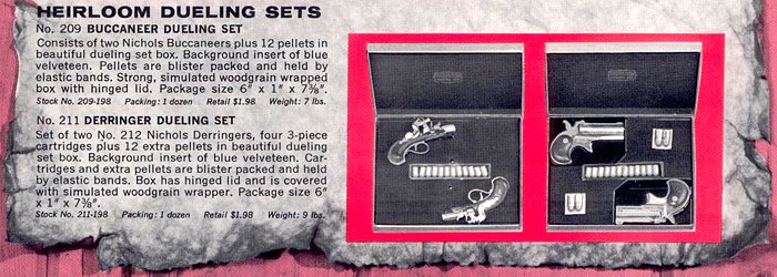 Here is an ad out of an old catalog for the Heirloom Dueling Sets that consisted of the Buccaneer and the Derringers sets. Both are really hard to come by these days, and that is an understatement.