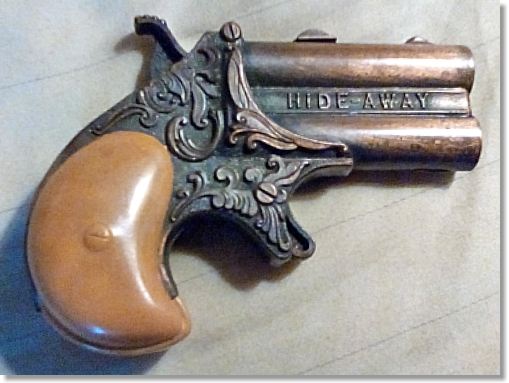Hideaway Derringer at the top has a bronzed look, this one that is mint on the