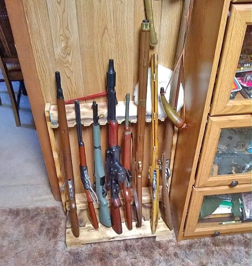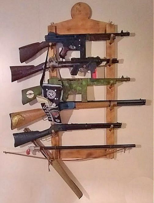 Even more rifles hanging on the wall. The
