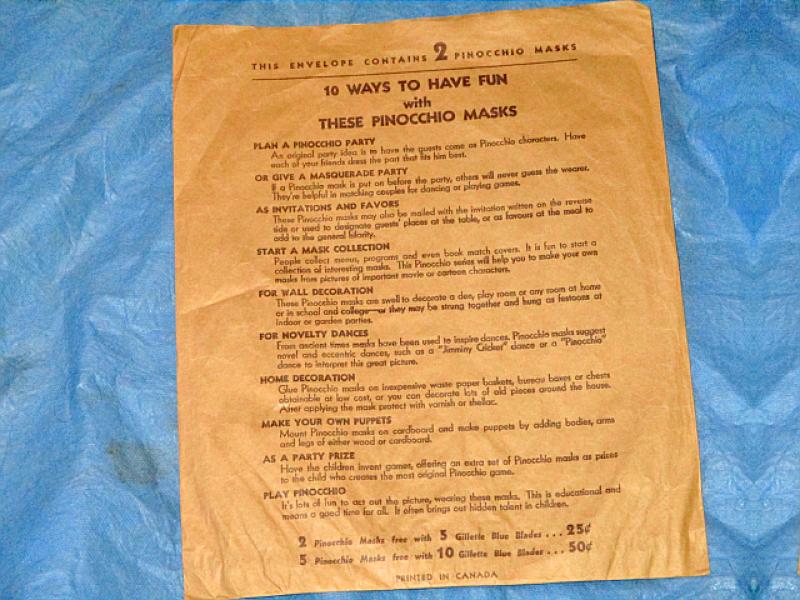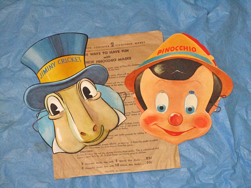 These are mint masks of Pinocchio and Jiminy Cricket. They