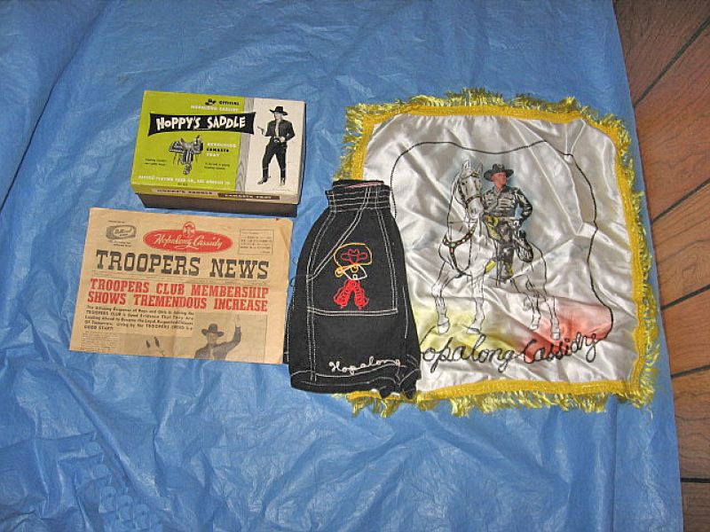 a Hoppy saddle canasta tray mint with a near mint plus box. Then a satin pillow