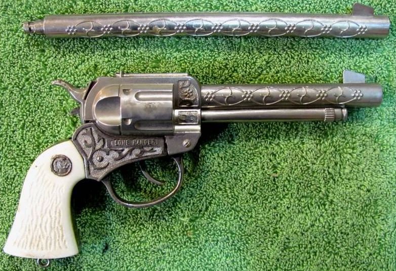 This is really a fine and rare Cap Gun. Only a small percentage of collectors have varieties of Cap Guns with barrel extensions, in the Restless Gun style.