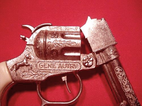 Here you can see the breakdown from the right side. Notice that, although Leslie-Henry probably made this Cap Gun, they didn't use the same release mechanism as they did on their own Cap Guns.