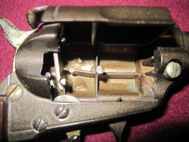 Here is this unusual cap area. This is the first example of a Cap Gun loading from the right that I've seen so far. Maybe it was for left handed shooters.
