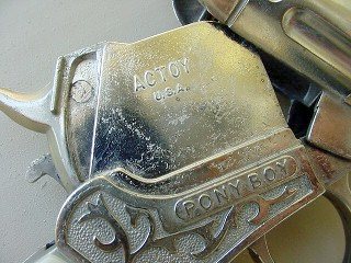 Jersey! Here we see a good close-up of the gun broken open. The releasing lever, as you can plainly see, is by the hammer. The scrollwork on this Cap Gun is plain, but simple and very effective. It also has quite high relief and the beaded "background." Photo thanks to Doug Hamilton |