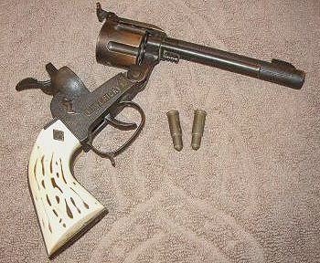owned this one. He ran out of ammo in a hurry! It is pretty unusual that you would have a breakaway gun in which the cylinder also rotated, but this gun has that feature. All the more reason to want one. Photo by Ed Myers |