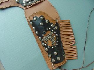 set. It's a fine tribute to the manufacturer and you will notice that not only is there an overlay of black with lots of studs, but there is a hole in the middle with another silver horse! Nice fringe too. Photo thanks to Doug Hamilton |