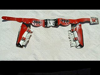 for Dale Evans. Or at the very least, for one of her special fans. This is a beautiful burgundy double holster set that would look good on nearly any cowgirl. Dedicated to the "Queen of the West." Photo thanks to Roy Steunenberg |
