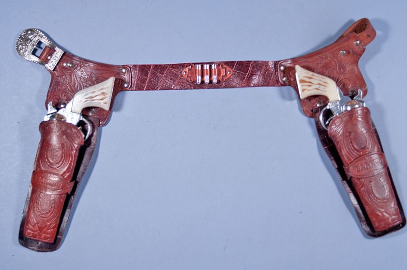 This Laredo holster set is a simple one, but very rare. I can't quite tell what guns Steve put in here, but I'll just say Mattel. If you know, let me know.