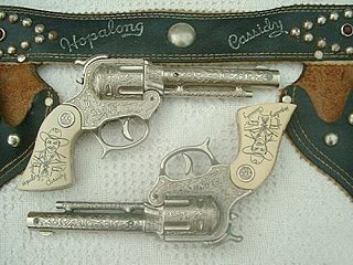 Cap Guns, here we can easily read the, "Hopalong Cassidy" in script. Hoppy was
