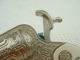 version. Simple: The hammer doesn't have the part that would hit the cap. Oh, I guess you can still put caps in this gun and shout, "Bang!!!" when you pull the trigger. At least then your ammo would last longer. Photo thanks to Roy Steunenberg |
