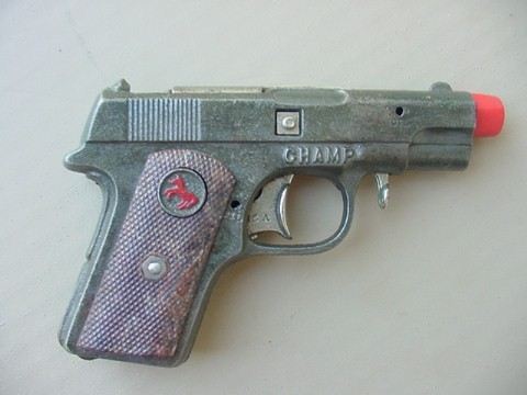 pistol in .45 caliber. Notice the prancing red horse. Hubley had this on