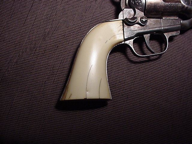 A good look at the detailing that has been done on the grips. Almost like scrimshaw, isn't it? It really makes it look like ivory. I guess George Patton would be proud.
