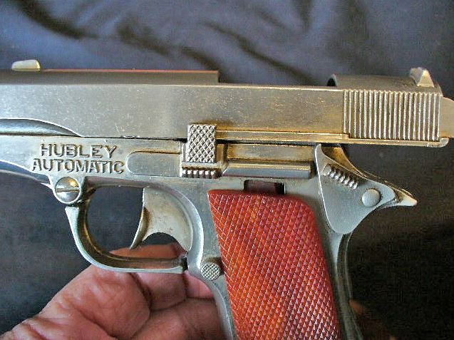 really close and still be sharp. This shot shows the slide locked back just like the real thing. Maybe they changed the trigger so you could tell that it was a toy. Photo thanks to Dean Coyle |