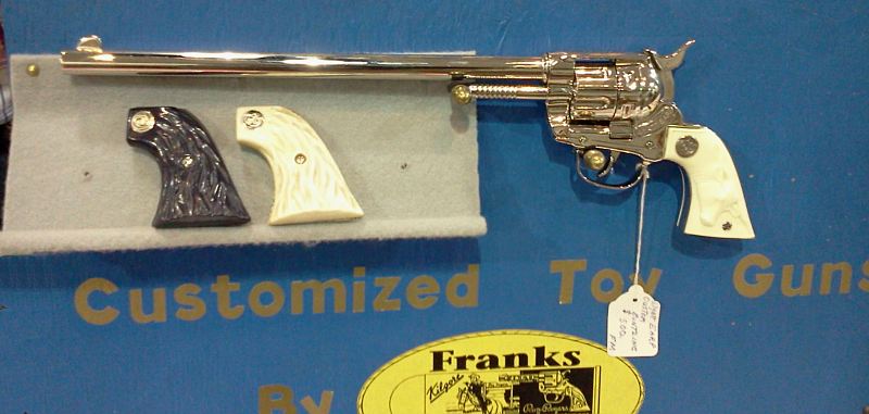 There is probably nobody any better at customizing Cap Guns than Frank McMath. He is the KING. This Cowboy has a Buntline barrel and a couple of extra custom grips. The finish on this gun is museum quality.