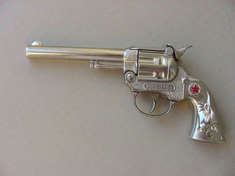 Here is the other side and you can just barely read the name. As I have said before, it is very much like the Dick Tracy Cap Gun.