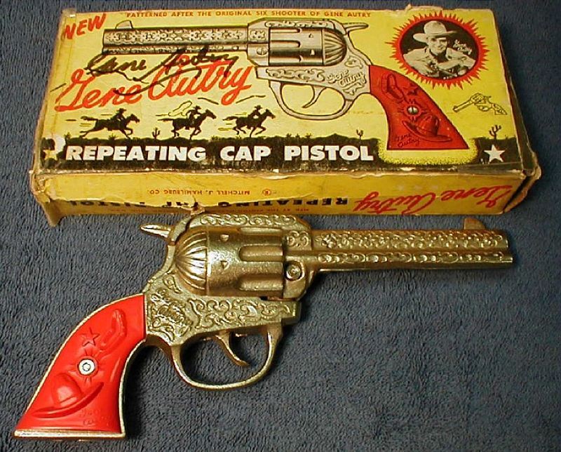 Super Rare Gene Autry Signed Box and Gun in Gold