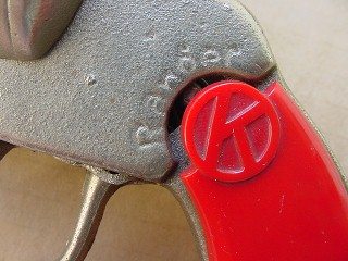 and we would be into quantum mechanics. The finish is a little smoother than we are actually seeing, but we are so close and the focus is so strong that it seems rougher than it is. Notice the cherry red grips and the characteristic Circle "K." Photo thanks to Doug Hamilton |
