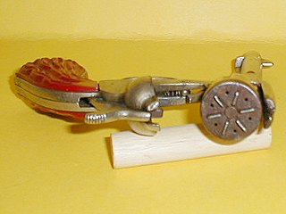 mechanism "broken down." This Cap Gun uses the disc-type caps that you can find on the Kilgore Page. You just stick a circle of caps on there, close it, and then you blow away all of the bad guys. Simple as that. Why is it that in my dreams, I can never get the trigger to pull? Photo thanks to Tom Coates |
