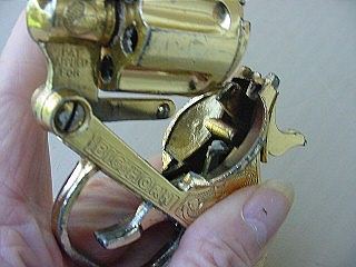 This view shows how this die-cast Cap Gun breaks apart to hold the caps. And, of course, Doug's fingers.