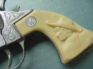 par. This Cap Gun, being 99% MINT, shows everything like it is supposed to look. Many times I photo-edit a picture, because people are really coming to this website to see what the Cap Guns are supposed to look like, but much of the time (in Doug's case) I don't need to do any. You can tell with a grip like this how much the gun has been played with, as too many gunfights would rub Kit's nose off. Photo thanks to Doug Hamilton |