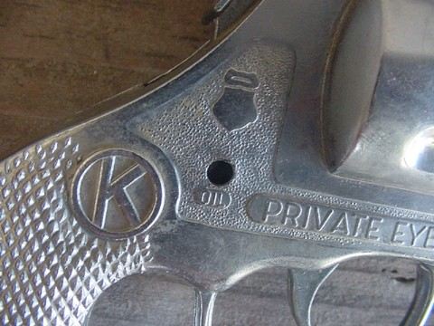 Now here is a good close-up of the right side of the gun. What I don't understand is why it has an oil hole. ??? This is a die-cast Cap Gun and usually only the cast-iron Cap Guns required oil holes. I don't know.