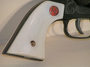 gun. You will notice that the Circle "N" on the grip has a red background. Most