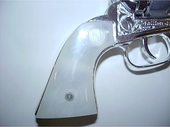 grips. You will notice that the Circle "N" logo is actually molded into the grip. It is hard to properly show the colors in the grip, but suffice it to say that the shades are somewhat cloudlike. Photo by Rich Hall |