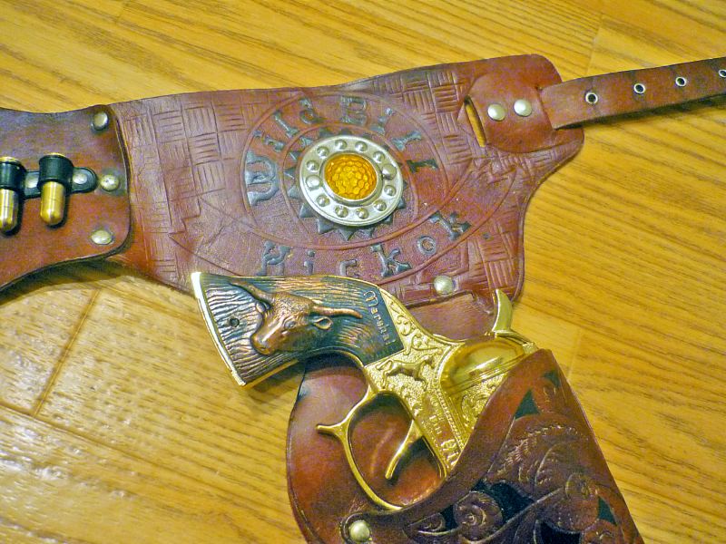 Here's the other one. Obviously this holster was made just for this set, as it features the fancy "W" with the interlocking horse shoes. (also on the "H")