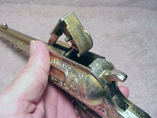 mechanism. I haven't airbrushed these photos any, as they really didn't warrant any, so you can see that the gold is slightly worn on this nice Cap Gun. Photo thanks to David Denton |