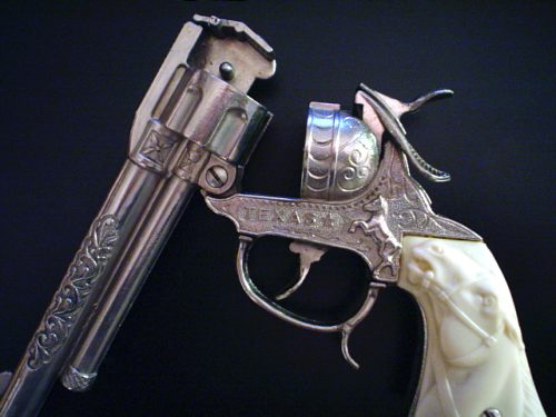 | The gun is opened to show where the caps go.