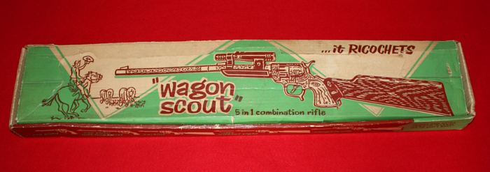 Here is the cover of this super rare box for the set. You can't read it here, but the extra lenght of barrel and the scope will store away in the rifle stock.