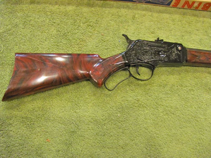 How's this for genuine imitation burled walnut? This is positively beautiful. And the foregrip is the same, but also with embossed lines for a better grip when shooting Johnny Ringo.