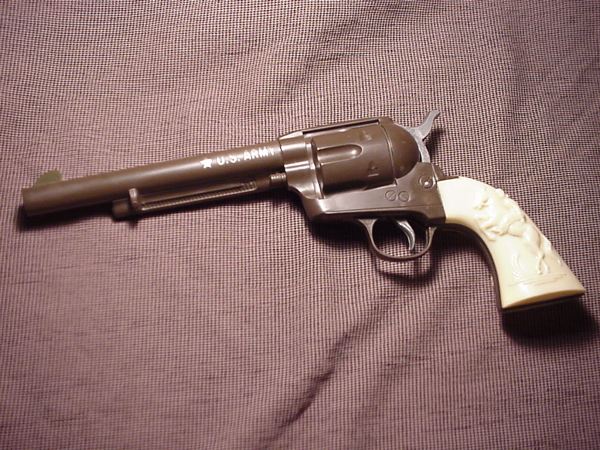 Here is a full-length shot of the olive drab U.S. Army clicker gun. Any Marx plastic guns in nice shape are rare as they were easily broken.