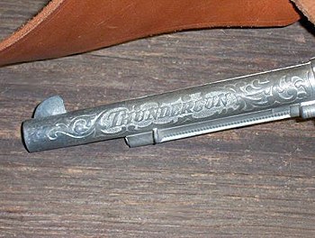 a gun. This bullet ejector is fake! Simple. It uses roll caps. I'm sure that ANY noise is now too damaging for children and will get any "well-meaning" adult locked up in prison. It was a different day when we were kids. This gun is from 1955-1960. Photo thanks to Harold Harris |