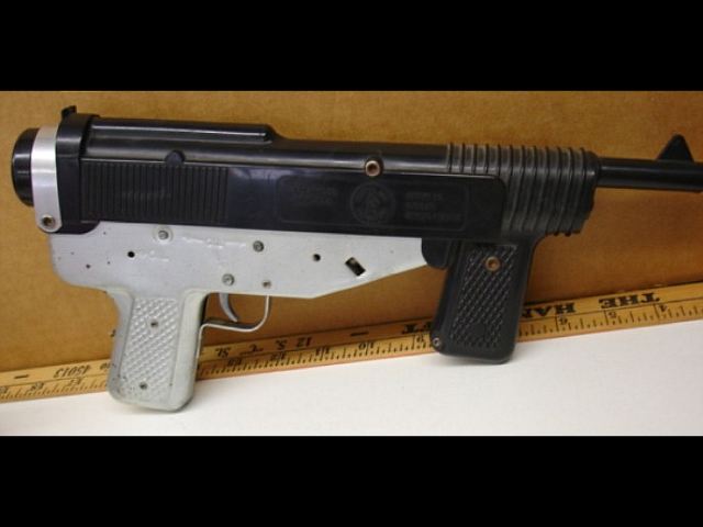 During World War II multi-thousands of similar "Grease Guns" were made for the troops and this is a similar toy copy. This one is not mint by any means, but it is the first I have seen.