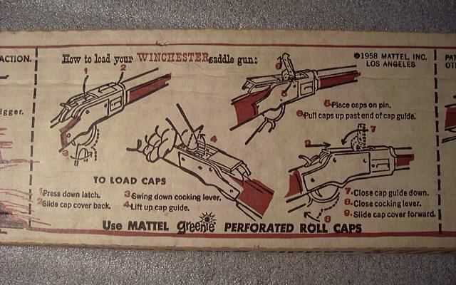 More instructions on the back of this rare box showing how to operate the rifle.