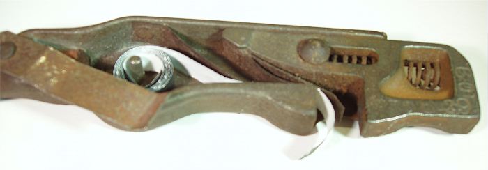 I had thought that he said that the other side has a head on it, but here we see the working mechanism of this cane Cap Gun.