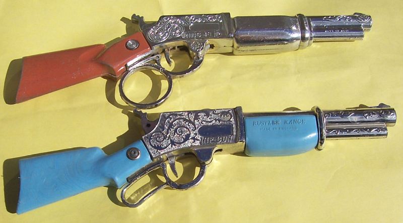 Ths Spit-Fire must have won a lot of hearts in order to be cloned so many times. This "Rustler Range" says quite plainly, "Made in England" on the side. (the Hip Gun) And the Ring Flip was made in Australia.
