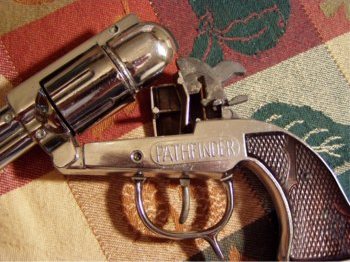 have seen if you had taken my photo after 5 hours of photo-editing!!! Anyway, as previously stated, this gun has a revolving cylinder and also holds a cap roll, making it a repeater. The best of both worlds. Photo thanks to Michael Sheehan |