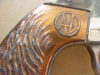 A nice close-up of the perfect grips for these guns. You can easily read the Circle "AL." Alan Ladd. If you haven't seen the movie "Shane" well...rent it. "Come back Shane!"