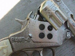 UNFIRED condition. Straight out of the factory. I don't understand why they called it a "BANG-O" except for the obvious. Wasn't there a Western-Sounding Name that might have fit better? Of course, if they had named it after some celebrity, then there would have been some serious royalties to pay. Photo thanks to Doug Hamilton |