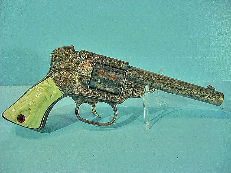 And here is the right side of this rare Cap Gun. Very few Cap Guns have a different image on the right grip than the left. My favorite example is the Pasadena Nichols Stallion 45. (naturally)