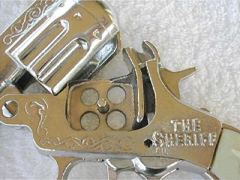 when broken down. You can also faintly read "OIL" just below "THE SHERIFF" where you were supposed to lubricate the gun. I could be wrong, but it doesn't seem that the relief on the scrollwork is as heavy on this one as on the "Peace Maker." Photo thanks to Dick DeArmond |