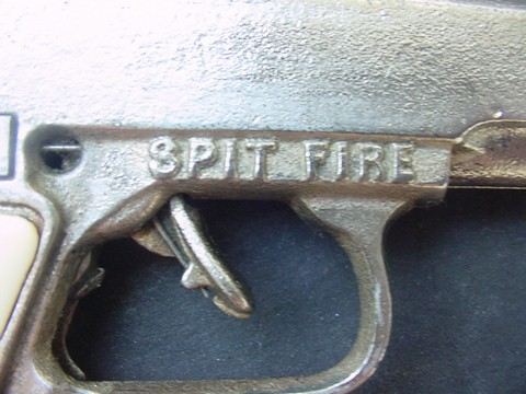 A close-up of the name showing that unlike the Nichols model, this one doesn't have the hyphen. This also shows the spring for the trigger.