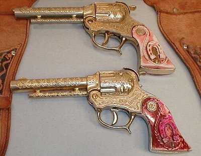 Besides, the guns are in perfect shape, except for that. You will notice that these Cap Guns are in the more rare gold finish. Quite rare. Photo thanks to David Denton |
